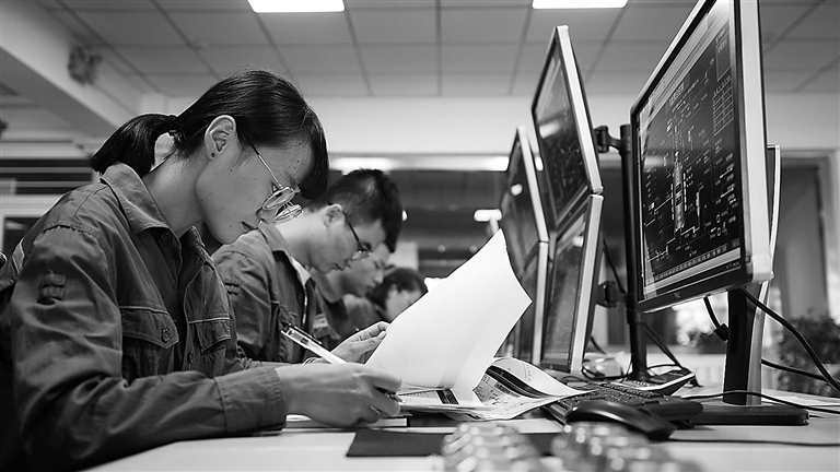 高新區(qū)企業(yè)中控室工作人員正在認(rèn)真分析生產(chǎn)數(shù)據(jù)