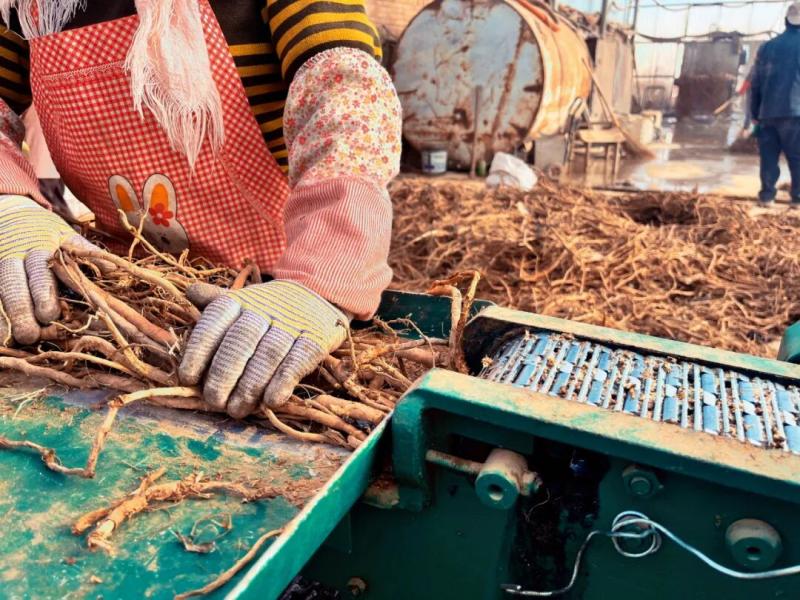 近年來,溫都爾勒圖鎮(zhèn)創(chuàng)新采用“黨支部+合作社+企業(yè)+農(nóng)戶”模式,將種植、加工、銷售擰成“一股繩”,讓中藥材成功變身“大產(chǎn)業(yè)”。走進(jìn)該鎮(zhèn)得民農(nóng)民專業(yè)合作社的加工車間,清洗、烘干、切片流水線不停運轉(zhuǎn),四年生甘草憑借根粗質(zhì)優(yōu)的優(yōu)勢,加工后更受市場青睞?!霸蹅冩?zhèn)的甘草品質(zhì)好,經(jīng)過加工后價值大幅提升,普通甘草片每公斤能賣到20元,直徑1.5厘米以上的優(yōu)質(zhì)甘草片每公斤可達(dá)30元左右,合作社年加工能力1萬余噸,產(chǎn)品銷往全國各地,有效解決了農(nóng)戶的銷售難題?!焙献魃缲?fù)責(zé)人王權(quán)賢說。
