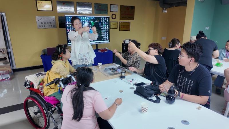 就業(yè)是殘疾人融入社會、實現自我價值的重要途徑。在阿拉善左旗志成殘疾人輔助性就業(yè)中心,學員們圍坐在一起,低頭專注于手中的手工藝品,盡管動作有快有慢,但每個人都神情專注,用勞動書寫著對生活的熱愛。