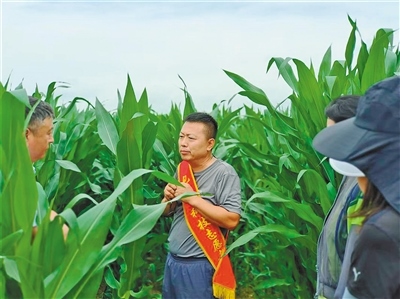 “鄉(xiāng)親們,這就是葉耳,從下往上數(shù)葉耳達(dá)到八九片就到了玉米的拔節(jié)期,此時(shí)就該追肥了……”包頭市農(nóng)牧科學(xué)技術(shù)研究所糧食中心的專家其日格站在田埂上對村民提出的問題逐一講解。