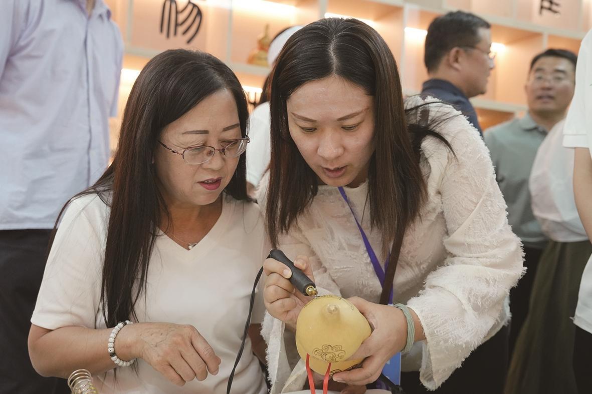 觀摩嘉賓體驗(yàn)非遺燙畫。