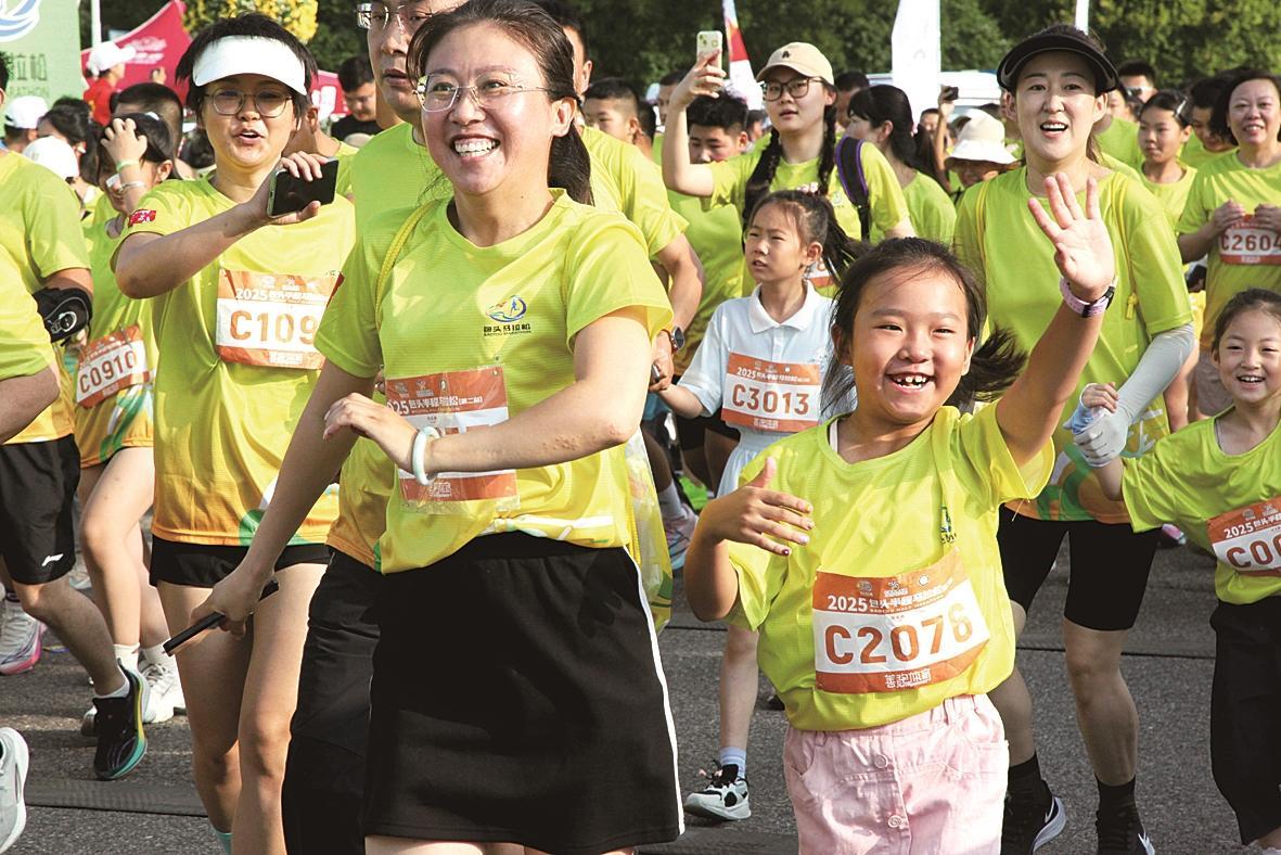 參加歡樂跑的10歲小朋友郝雨嘉堅(jiān)定地說:“雖然天氣很熱,但也只有五公里,有爸爸媽媽帶著我,肯定能跑下來,我還想去看非遺表演和紀(jì)念品呢?!?/p>
