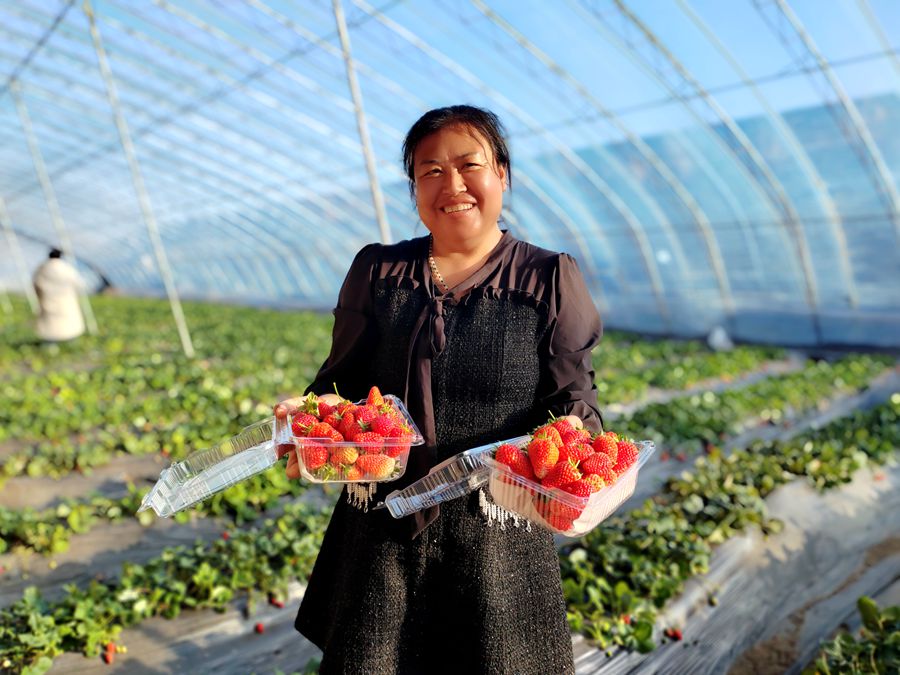 林西縣大營子鄉(xiāng)禾旺設(shè)施農(nóng)業(yè)產(chǎn)業(yè)園的草莓獲豐收。