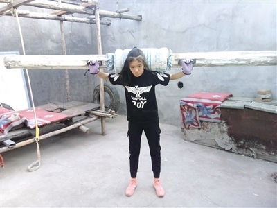 用工地上撿來的木頭樁和繩子制作的簡易牽引機(jī),加了墊子的木凳做跳躍訓(xùn)練,用木頭和海綿做的啞鈴……走進(jìn)呼和浩特市土默特左旗察素齊鎮(zhèn)鄭國花的家里,由父親耗時(shí)半個月打造的簡易健身房就是鄭國花每天訓(xùn)練體能的地方。鄭國花在土默特左旗第一中學(xué)高一就讀,每天凌晨4點(diǎn)多,父女二人就準(zhǔn)時(shí)出現(xiàn)在察素齊鎮(zhèn)街頭的柏油路和體育場里。從小學(xué)六年級到高一,訓(xùn)練從不懈怠,一堅(jiān)持就是5年?!捌鋵?shí)最初讓孩子練習(xí)中長跑,主要是為了鍛煉孩子的身體。女兒4個月大的時(shí)候,她媽媽就離開了,我一直又當(dāng)?shù)之?dāng)媽把她拉扯大,但這娃娃身體一直不好,不怎么吃飯,身體十分瘦弱,直到上小學(xué)六年級的時(shí)候,連一碗飯都吃不進(jìn)去。我一看再這么下去身體指定是要垮掉的,就想著讓她練習(xí)跑步,能多吃點(diǎn)飯。因?yàn)槲沂擒娙顺錾?,以前也是運(yùn)動員,和女兒商量后,她也同意了,我們就開始跑步。第一個月,她還追不上我,但飯量確實(shí)見長,到了第二個月,我就追不上她了,我開始騎著自行車陪她跑,再后來自行車追不上了,我就騎了一輛三輪車,三輪車也不行了,干脆買了一輛摩托車,這么多年從沒間斷過?!?月19日,鄭龍?jiān)诮邮苡浾卟稍L時(shí)表示,對于女兒,她最大的希望是女兒健健康康的,以后能進(jìn)入北京體育大學(xué),將來能進(jìn)入國家隊(duì),為國爭光。