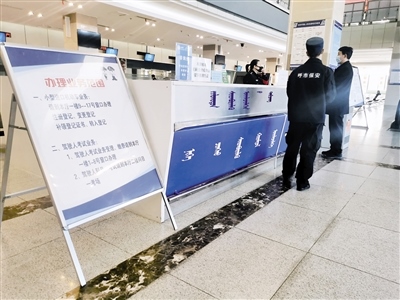 “你好!違章查詢和罰款繳納需要去交管隊,不在這里辦理。如果是本人車輛,也可下載12123 APP進(jìn)行辦理?!?月18日9時10分,記者走進(jìn)呼和浩特市交警支隊車輛管理所,在政務(wù)服務(wù)中心東大廳正對著大門的導(dǎo)辦臺,一位民警正在接受市民業(yè)務(wù)咨詢。記者看到,大廳里往日喧囂熱鬧的場景不見了,只有零星幾位市民在辦理業(yè)務(wù)。