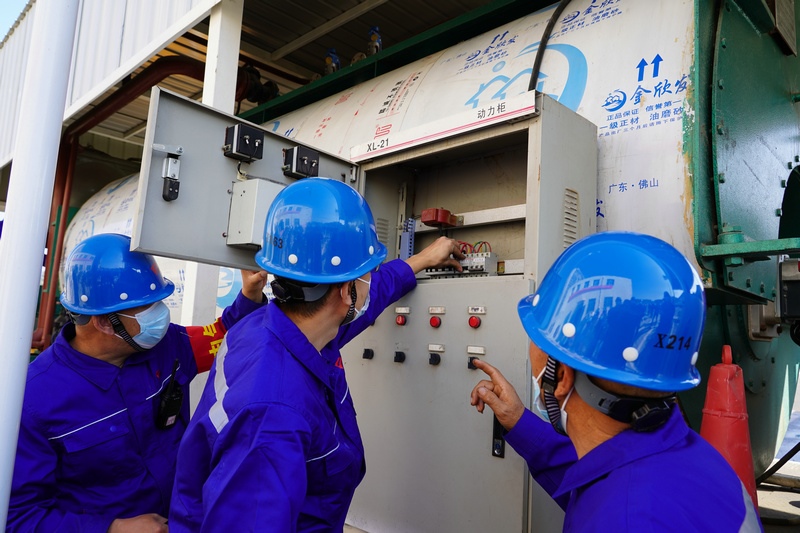 演練伊始,參加演習(xí)的運(yùn)營所、司爐車間、檢修車間、電氣車間、儀表車間、設(shè)備處、安保處等人員按照預(yù)設(shè)的情境,各司其職,開始了管路連接、電源接入、鍋爐調(diào)試,再進(jìn)行循環(huán)泵、補(bǔ)水泵盤車的調(diào)試,以及補(bǔ)水、循環(huán)泵啟動、鍋爐點(diǎn)火等等一系列有條不紊的實(shí)戰(zhàn)操作。