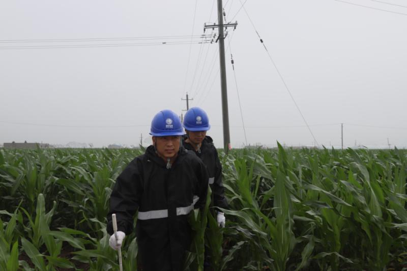 左中公司運(yùn)維人員在10千伏工業(yè)2線保三南園分03桿進(jìn)行雨后特巡。(攝影:趙昆陽(yáng))
