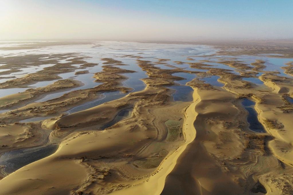 11月24日在內(nèi)蒙古烏海市拍攝的烏海湖景色(無人機(jī)照片)。
