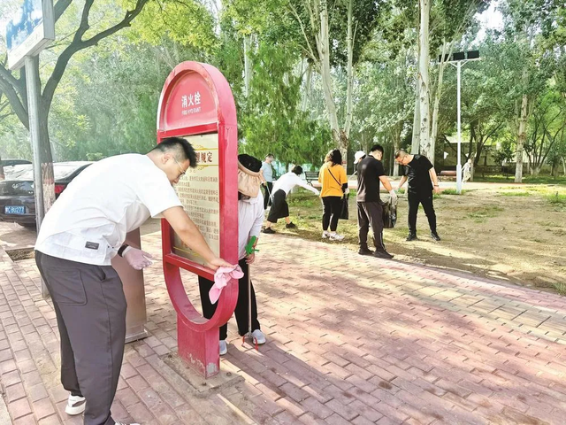 隊員們中有不少是和田永成年紀相仿的退休老人,還有一些新加入進來的年輕志愿者。他們有的拿著掃帚清掃路面,有的提著袋子撿拾垃圾,有的則在擦拭小區(qū)的健身器材。魏玉仙是志愿服務隊的老隊員了,她一邊擦著石凳一邊說:“小區(qū)是咱們自己的家,干凈了住著才舒服。老田頭一招呼,我們肯定得來。”