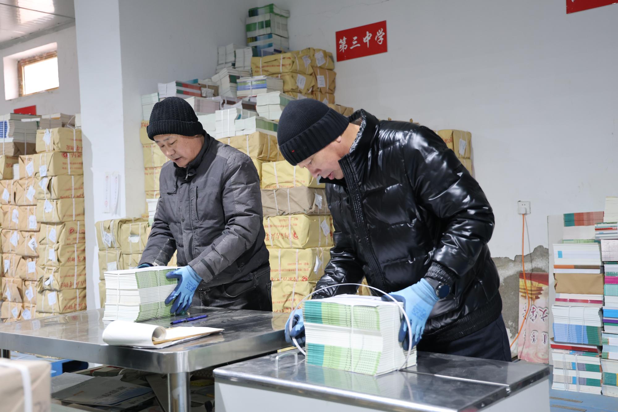 2月25日,在興安盟突泉縣新華書店倉庫,各類教材按照不同學校、年級、科目整齊擺放,員工們分工明確,忙碌而有序核對領(lǐng)發(fā)書單、清點包件、安排裝運,整個教材發(fā)放流程高效運轉(zhuǎn)。