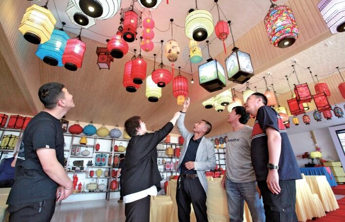 “我們有手工編織的宮燈、紗燈、吊燈等180多種款式的燈籠供消費(fèi)者選擇?!苯眨灾螀^(qū)級(jí)非物質(zhì)文化遺產(chǎn)項(xiàng)目——燈籠編織技藝傳承人杜學(xué)龍給游客介紹自己的產(chǎn)品。