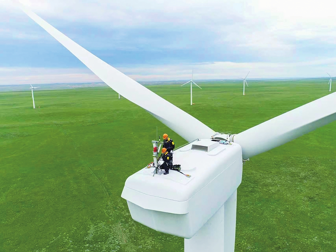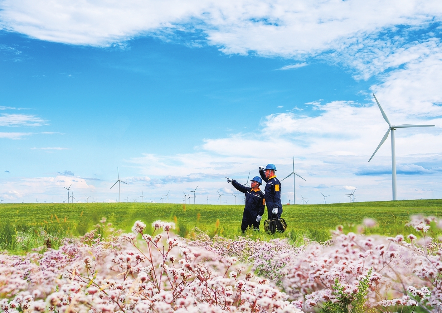 近日,國(guó)華投資蒙東分公司輝騰梁風(fēng)電場(chǎng)內(nèi),風(fēng)機(jī)群與遍野花海相映成趣,兩名風(fēng)電運(yùn)維工程師,正在交流剛處理完的偏航故障細(xì)節(jié),核對(duì)風(fēng)速儀、風(fēng)向標(biāo)校準(zhǔn)數(shù)據(jù),討論后續(xù)防沙維護(hù)措施,同時(shí)檢查設(shè)備運(yùn)行狀態(tài),確保風(fēng)機(jī)穩(wěn)定發(fā)電。