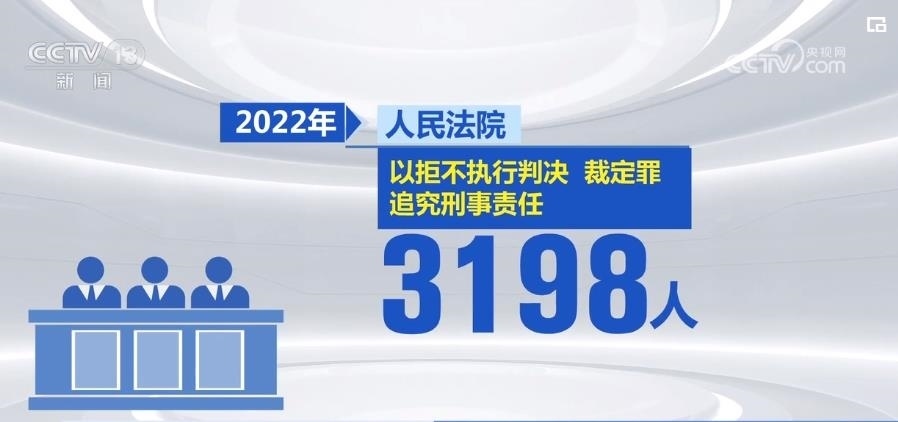 2022年,人民法院以拒不執(zhí)行判決、裁定罪追究刑事責(zé)任3198人。下一步,最高人民法院將聯(lián)合公安機(jī)關(guān)、檢察機(jī)關(guān)開展集中打擊拒不執(zhí)行判決、裁定犯罪專項(xiàng)行動(dòng),建立健全公檢法機(jī)關(guān)依法懲治拒不執(zhí)行判決、裁定犯罪的常態(tài)化工作機(jī)制。