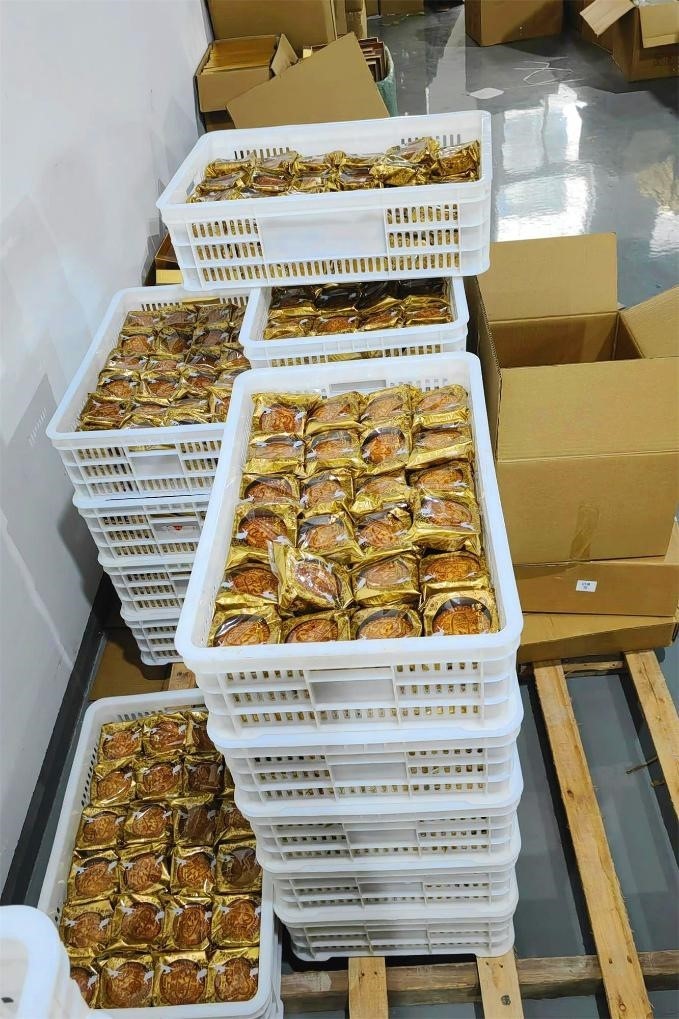 海珠警方立即成立專案組展開偵查,發(fā)現(xiàn)位于外地的倉儲、銷售假冒品牌月餅的窩點,并查到生產(chǎn)源頭。至此,一個以王某為首的生產(chǎn)、銷售假冒品牌月餅的團伙浮出水面。警方在8月24日開展收網(wǎng)行動,共抓獲犯罪嫌疑人20人。