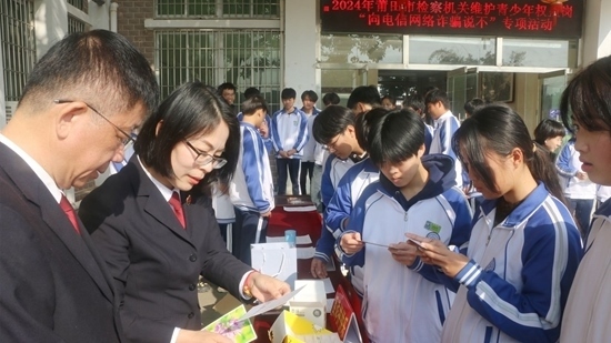 福建莆田人民檢察院第六檢察部開展反詐宣傳。
