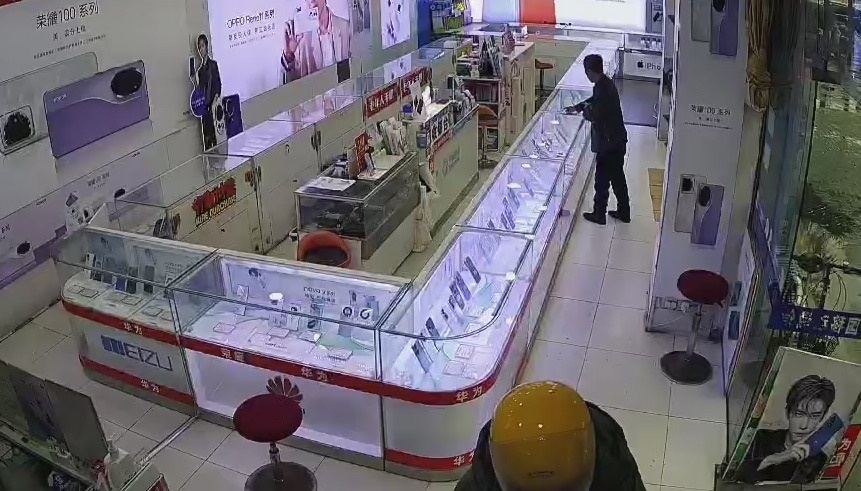二手手機(jī)店監(jiān)控畫(huà)面。本文圖片均為 上海寶山警方 提供