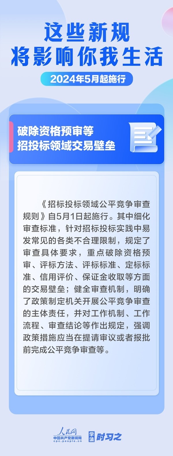 促進(jìn)非銀行支付行業(yè)健康發(fā)展;首次對(duì)社會(huì)組織名稱進(jìn)行統(tǒng)一規(guī)定;破除資格預(yù)審等招投標(biāo)領(lǐng)域交易壁壘……5月起,這些新規(guī)施行,將影響你我生活。