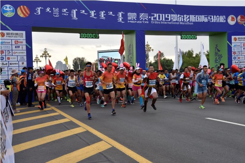8月24日傍晚,蒙泰·2019鄂爾多斯國(guó)際馬拉松在鄂爾多斯市康巴什區(qū)烏蘭木倫湖廣場(chǎng)鳴槍開跑。