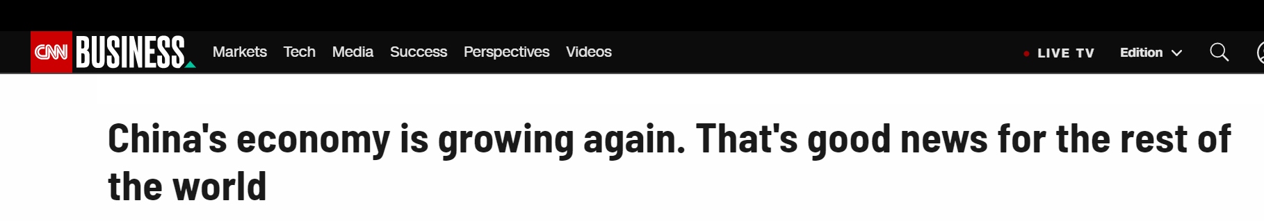 16日,中國GDP由負(fù)轉(zhuǎn)正的數(shù)字一經(jīng)公布,美國有線電視新聞網(wǎng)(CNN)即發(fā)表題為《中國經(jīng)濟(jì)恢復(fù)增長是全世界的好消息》的文章。文章認(rèn)為,3.2%的增長意味著中國扭轉(zhuǎn)了經(jīng)濟(jì)衰退局面。作為世界上第一個(gè)采取嚴(yán)格措施防控疫情的國家,中國的較早恢復(fù)經(jīng)濟(jì)增長,對其他國家是個(gè)好兆頭。