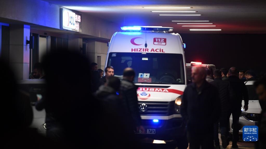 11月13日,一輛救護(hù)車停在土耳其伊斯坦布爾市中心塔克西姆廣場附近一家醫(yī)院。新華社記者沙達(dá)提攝