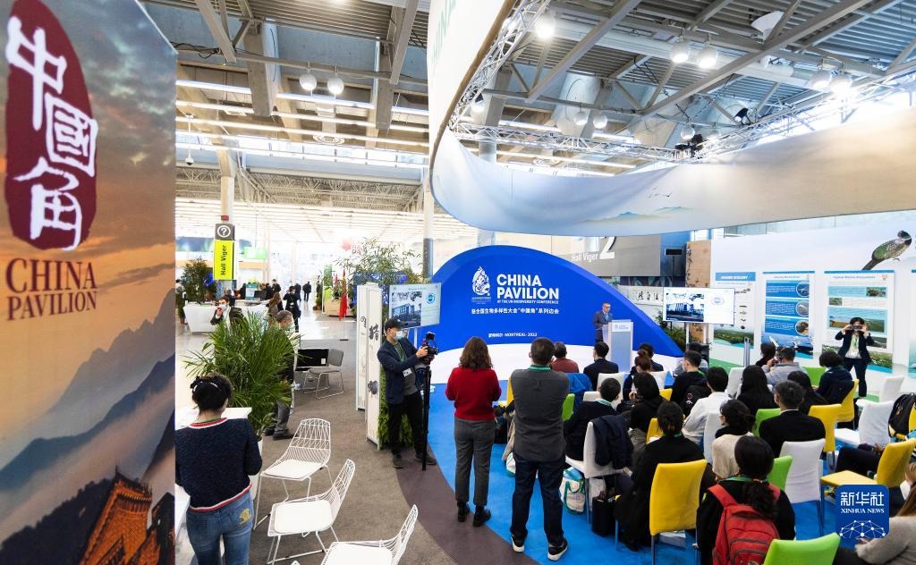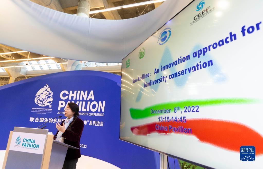 12月8日,在加拿大蒙特利爾舉行的《生物多樣性公約》第十五次締約方大會(huì)(COP15)第二階段會(huì)議上,中國角開展的一場邊會(huì)活動(dòng)聚焦生態(tài)保護(hù)紅線。 新華社發(fā)(鄒崢攝)