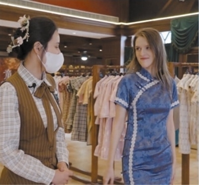 安娜是一名來(lái)自羅馬尼亞的留學(xué)生,她對(duì)中國(guó)傳統(tǒng)服裝旗袍充滿(mǎn)興趣。安娜說(shuō):“中國(guó)是有著5000多年悠久文化的文明古國(guó),很多傳統(tǒng)文化都被保護(hù)和傳承得特別好。我覺(jué)得旗袍不只是一種服飾,它背后有厚重的歷史。希望以后有機(jī)會(huì)參加旗袍文化節(jié)的活動(dòng),可以多了解一下旗袍的歷史。我希望嘗試各種旗袍,穿上旗袍讓我變得更加自信。”