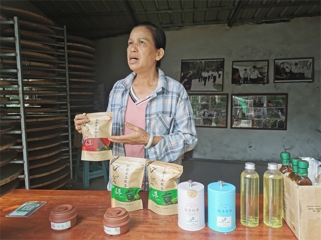 王菊茹介紹自己手工制作的茶葉。人民網(wǎng) 符園園攝