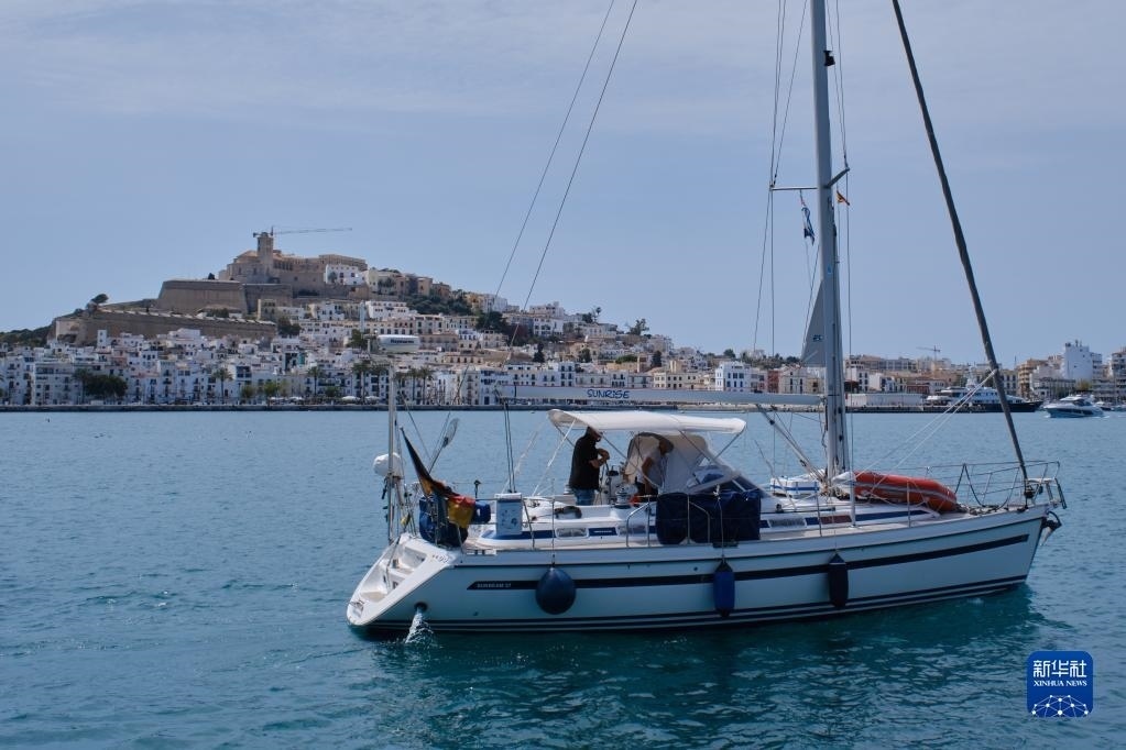 4月10日,一艘帆船駛?cè)胛靼嘌腊屠⒗锶簫u伊維薩島港口。