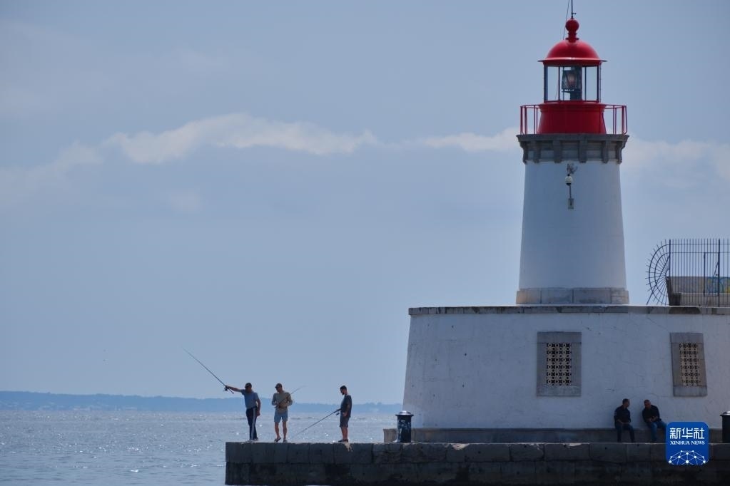 4月10日,人們在西班牙巴利阿里群島伊維薩島港口釣魚。