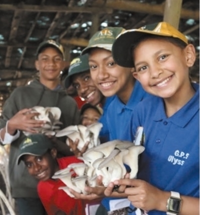 在巴布亞新幾內亞東高地省,澳大利亞國際學校學生到菌草示范基地參觀學習。中國國家菌草工程技術研究中心供圖
