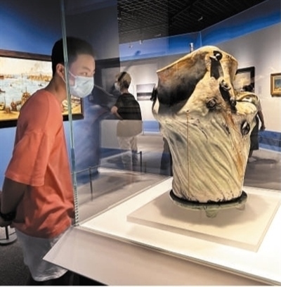 觀眾在上海博物館觀賞“塔拉薩:海洋文明與希臘藝術”展。周東潮攝(影像中國)