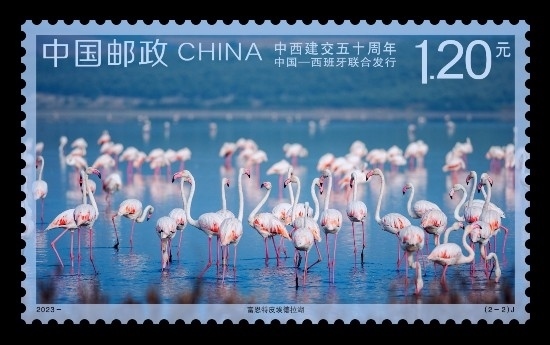 為紀念中西建交50周年,中國郵政定于2023年5月10日發(fā)行《中西建交五十周年》(與西班牙聯(lián)合發(fā)行)紀念郵票1套2枚,郵票圖案以西班牙的富恩特皮埃德拉湖和中國的衡水湖為題材,展現(xiàn)出兩國湖泊的旖旎風光和自然生態(tài)特征,畫面構(gòu)圖簡約明快、表現(xiàn)意境清朗優(yōu)美。據(jù)了解,這是衡水湖首次作為“國家名片”出現(xiàn)在中外聯(lián)合發(fā)行的郵票當中。