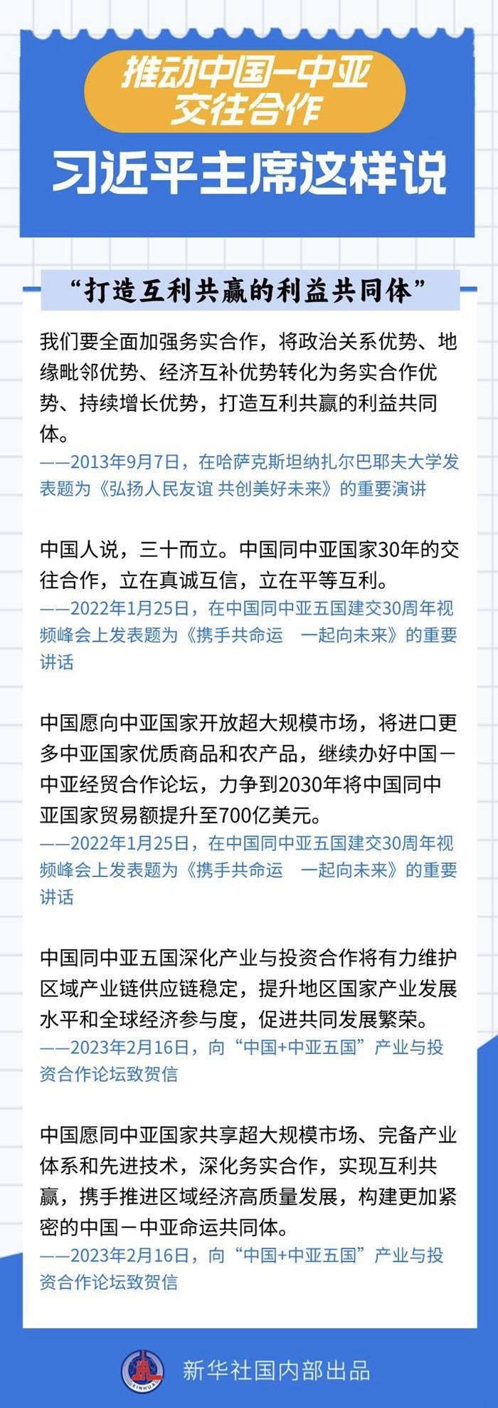 過去十年間,習近平主席同中亞五國領導人保持密切互動,引領中國同中亞國家政治互信不斷深化,務實合作提質(zhì)升級,國際協(xié)作走深走實。關于中國-中亞交往合作,習近平主席作出過哪些重要論述?一起來看——