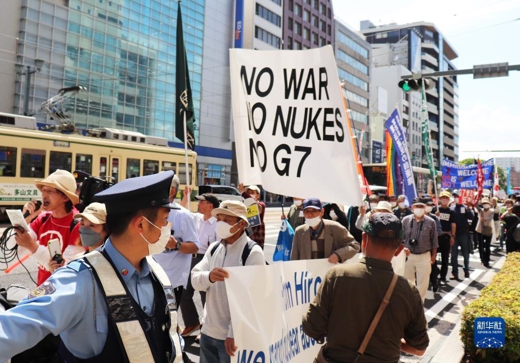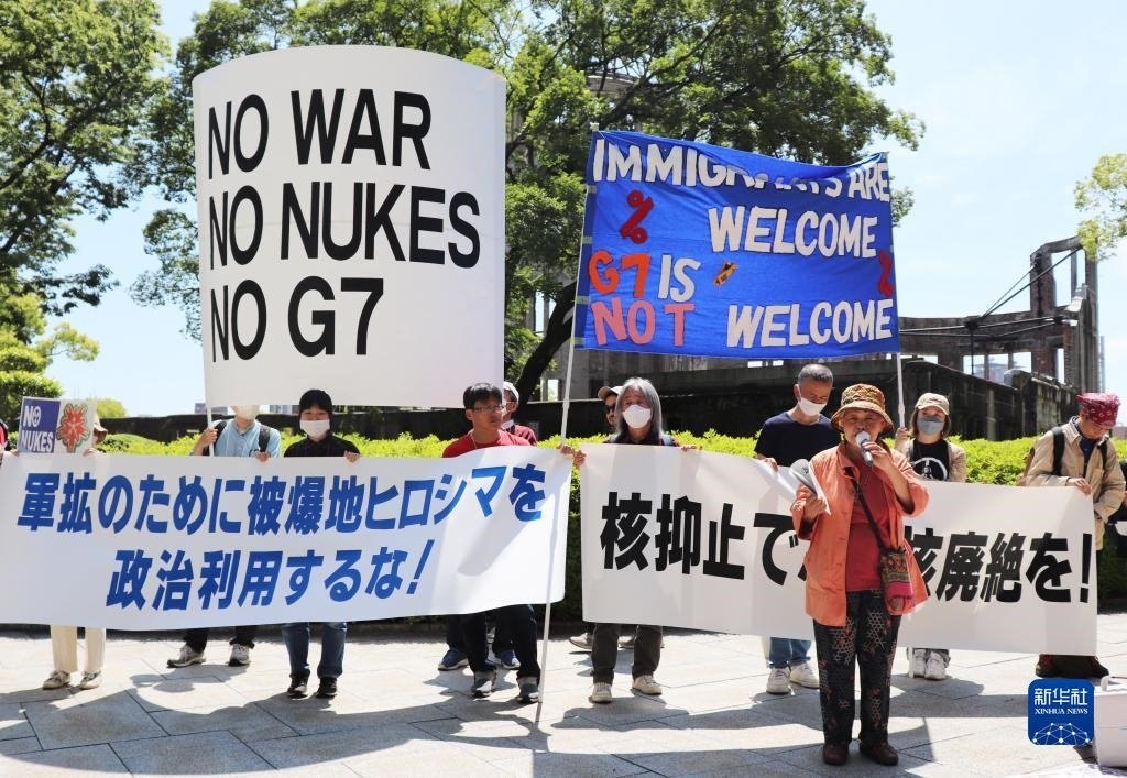 “不做戰(zhàn)爭(zhēng)幫兇”“不要G7”……14日,200多名日本民眾舉著各式標(biāo)語(yǔ),在廣島和平紀(jì)念公園原子彈轟炸遺址舉行集會(huì),強(qiáng)烈抗議七國(guó)集團(tuán)(G7)峰會(huì)將在廣島召開(kāi)。