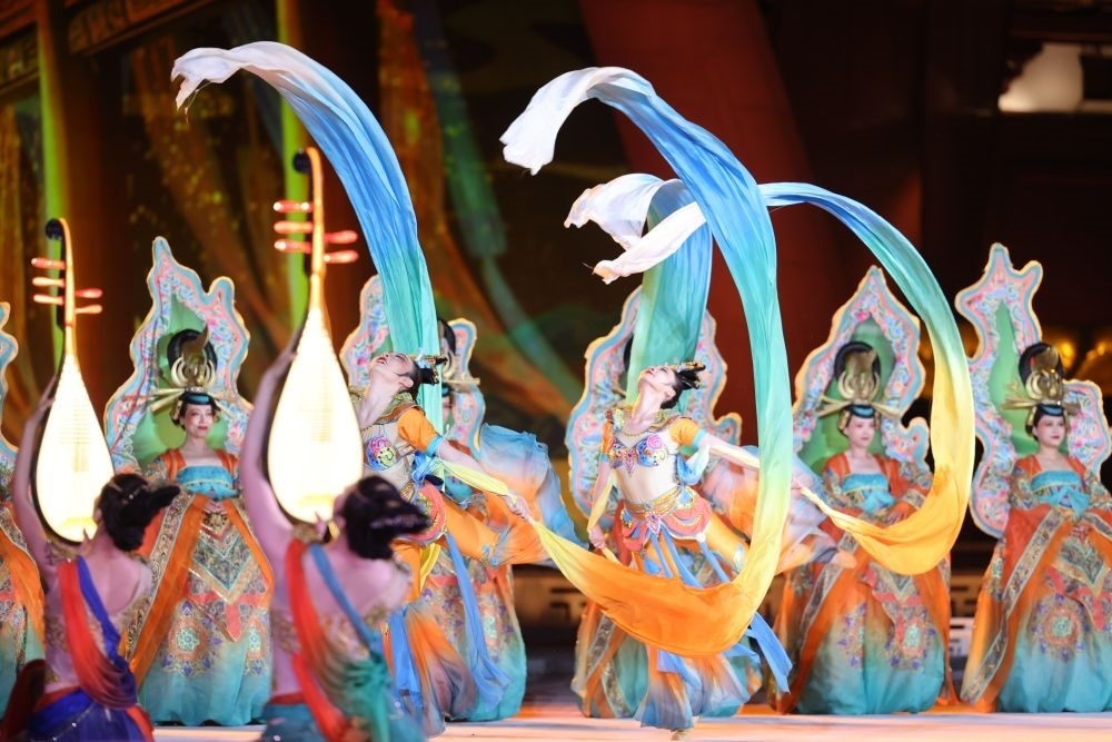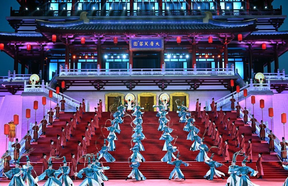 習(xí)近平夫婦為貴賓舉行唐朝傳統(tǒng)迎賓儀式。紫云樓前,禮樂(lè)和鳴,明快有力的古代佾舞、絢麗婀娜的芙蓉花舞,表達(dá)了古都西安人民的熱情好客,體現(xiàn)了中華文化兼容并蓄的精神風(fēng)貌。