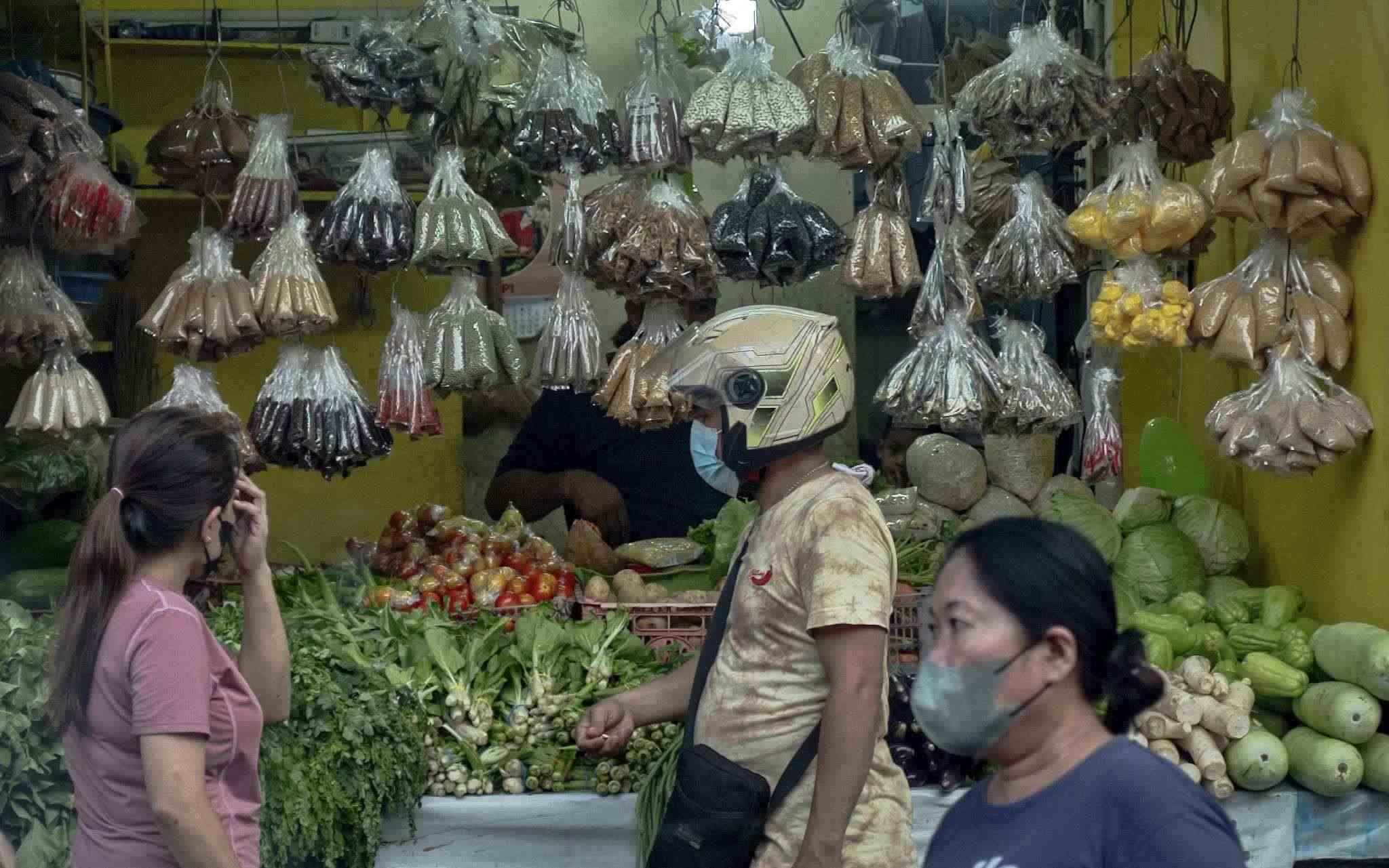 當(dāng)?shù)貢r(shí)間2023年4月19日,菲律賓馬尼拉,在奎松市的菜市場,塑料包裝的不同商品在出售。