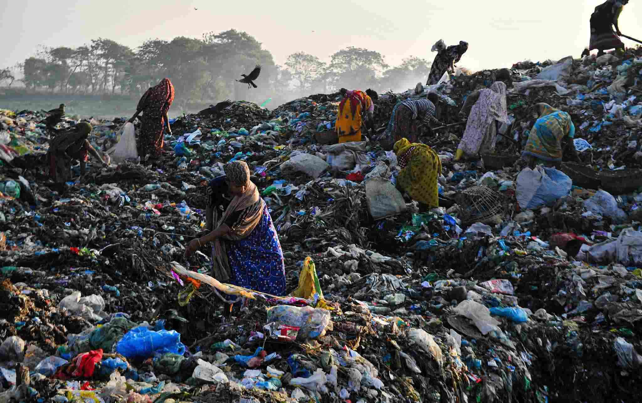 當(dāng)?shù)貢r(shí)間2023年1月2日,孟加拉國錫爾赫特,工人們?cè)谝粋€(gè)有毒廢物傾倒場工作。