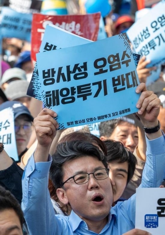 韓國最大在野黨共同民主黨黨首李在明參加了這一集會。李在明說,日本政府核污染水排海計劃,“不顧?quán)弴欠衩墒軗p失,不顧全球海洋是否遭到污染,對此韓國總統(tǒng)和韓國政府沒有理由贊同”。