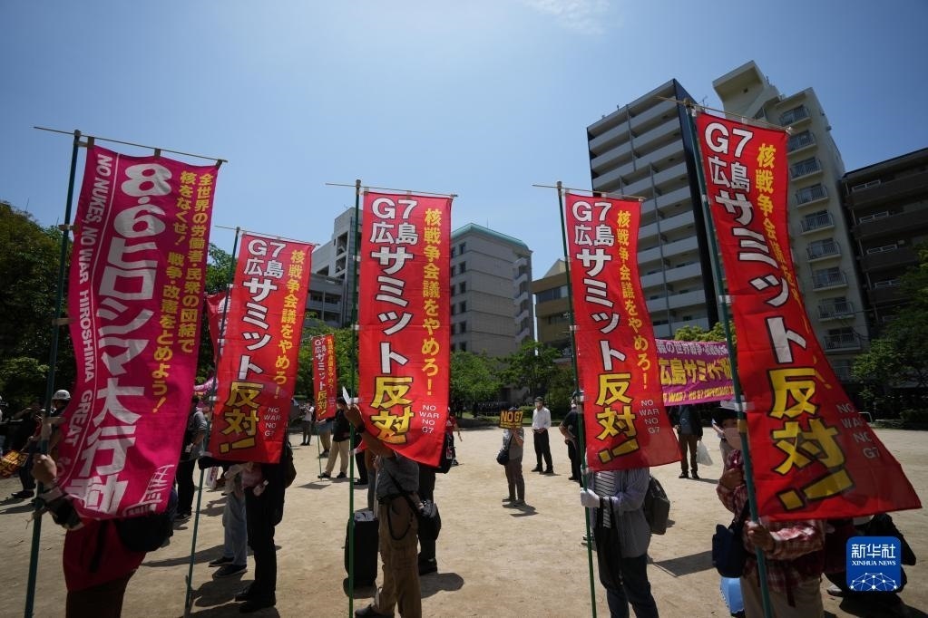 當(dāng)天,大批民眾再次在廣島舉行大規(guī)模集會(huì)游行,抗議七國(guó)集團(tuán)(G7)峰會(huì)舉行。   新華社記者 張笑宇 攝