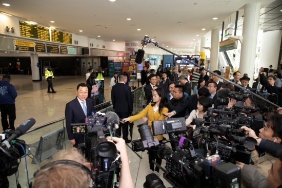 5月23日,中國新任駐美大使謝鋒抵美履新。在紐約機(jī)場,謝鋒與在場的中外媒體及各界人士交流互動(dòng)。