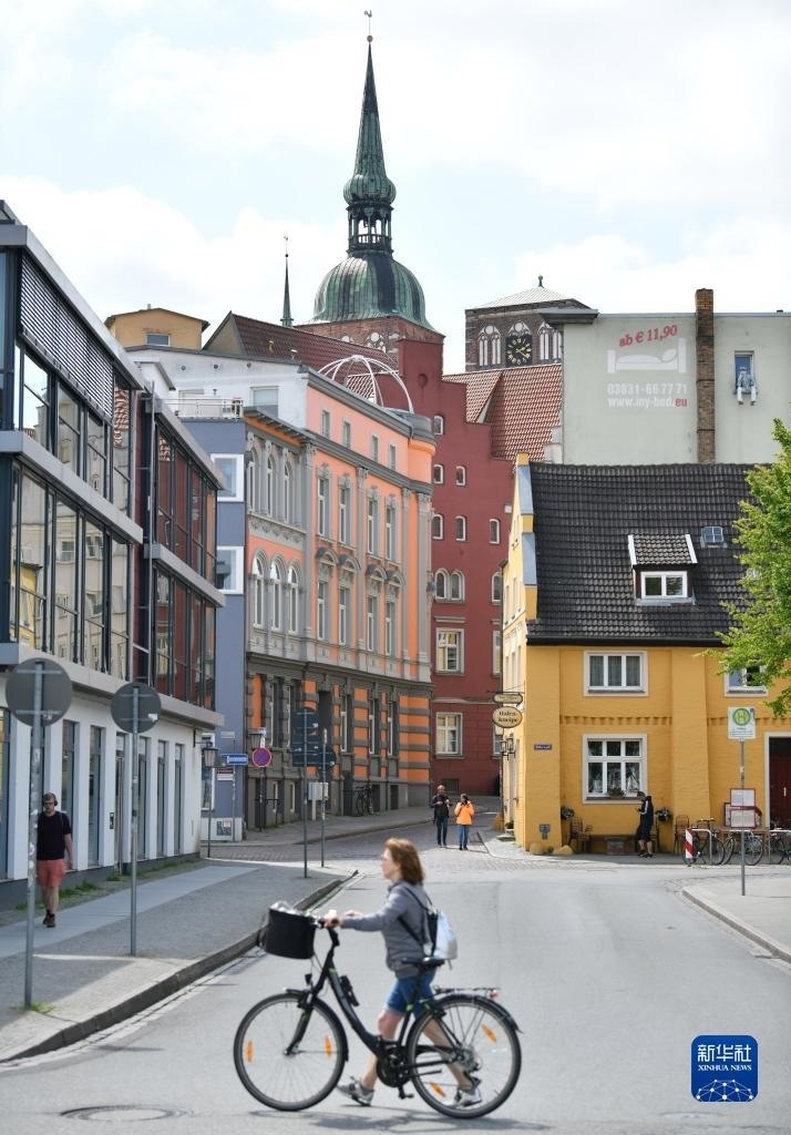 6月1日,人們在德國施特拉爾松德街頭行走。