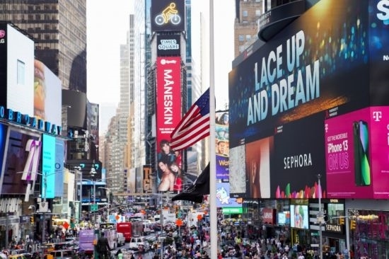 這是2022年5月17日在美國紐約時(shí)報(bào)廣場(chǎng)拍攝的美國國旗。新華社記者王迎攝