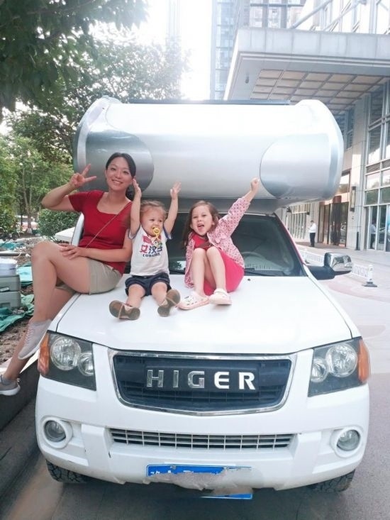 2021年7月,貝特朗一家人在西北環(huán)線自駕游出發(fā)前和租用的房車合影。(圖片由受訪者提供)