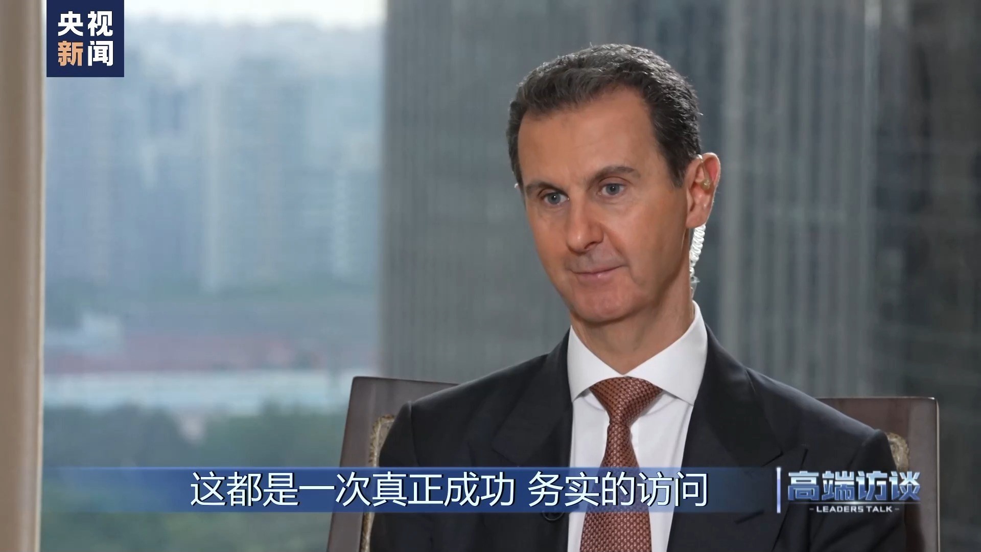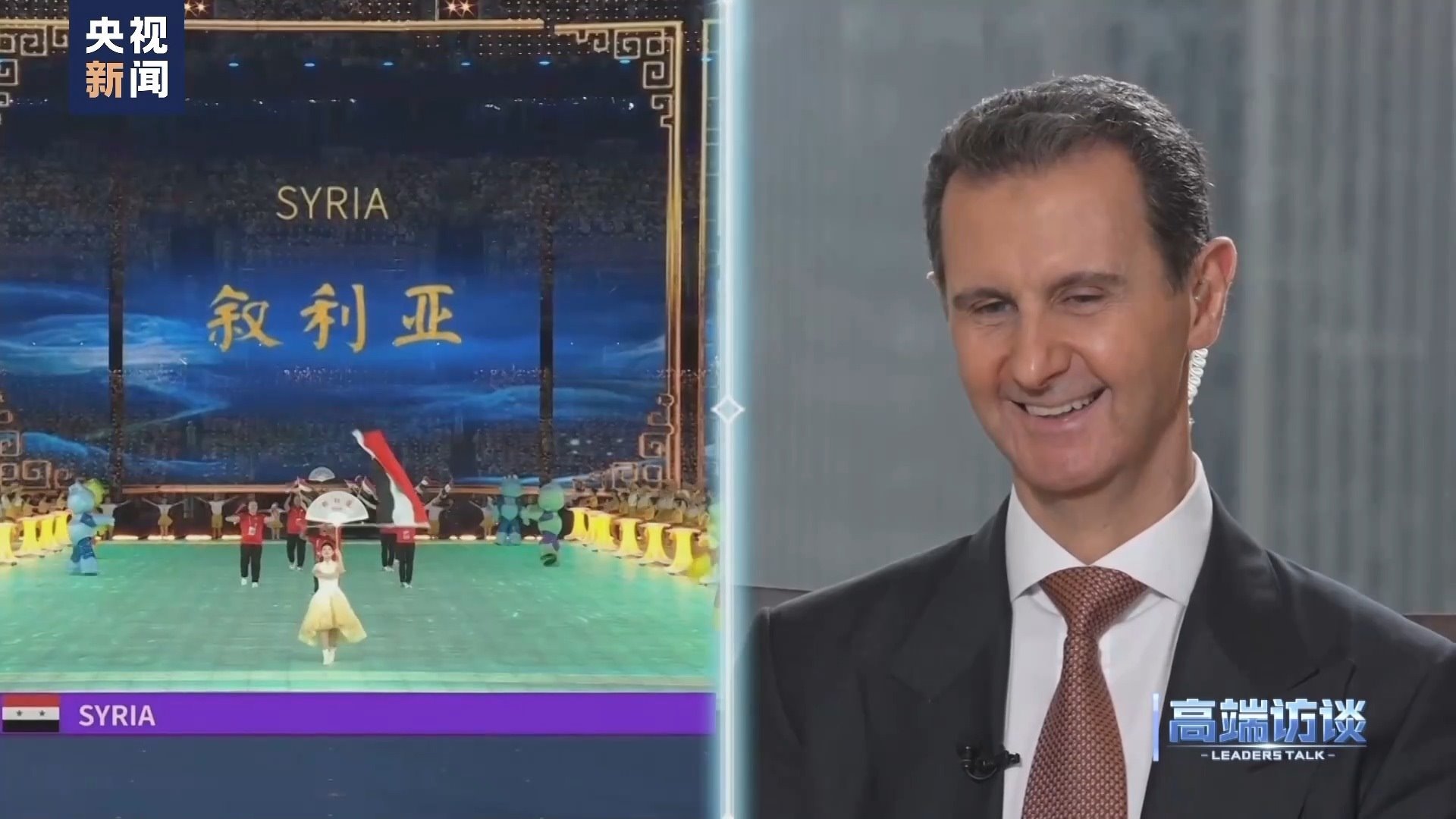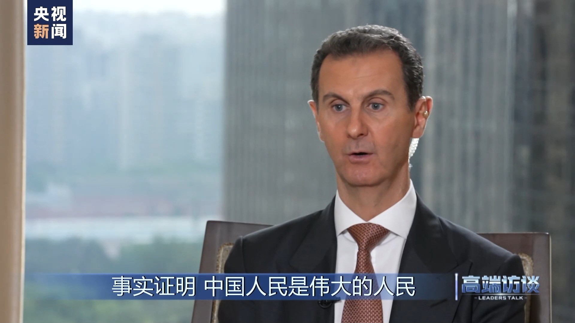 巴沙爾:感謝你給我機(jī)會,通過你們頻道、你們節(jié)目向中國人民說這些話。我想向中國人民表示祝賀,祝賀你們過去幾十年取得的成就。事實(shí)證明,中國人民是偉大的人民。我不是嘴上說說,而是事實(shí)的確如此。我們祝愿中國實(shí)現(xiàn)國家愿景,在國際上,中國的愿景也是當(dāng)今世界大多數(shù)國家的愿景。謝謝你的采訪!