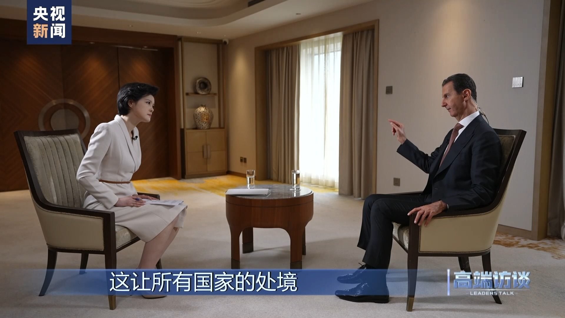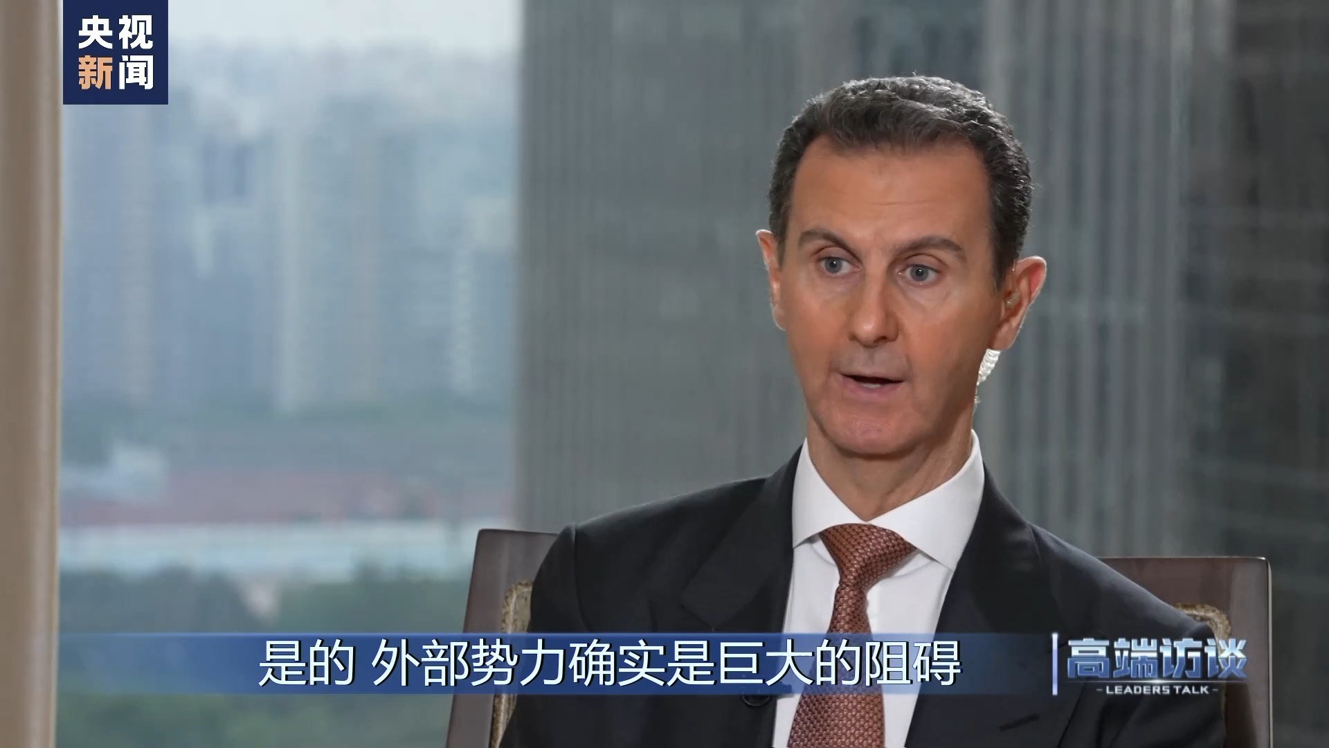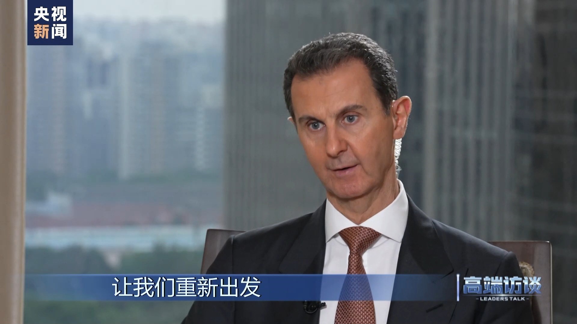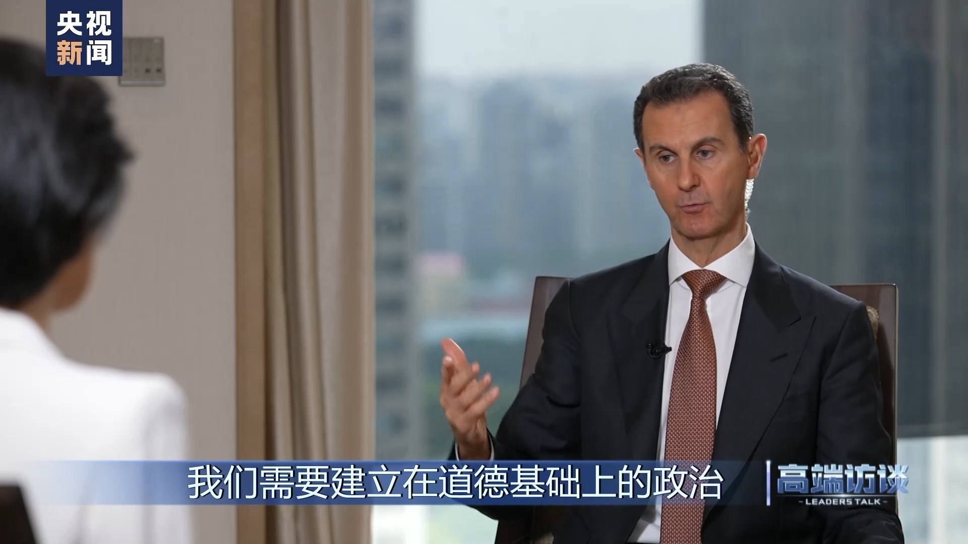 巴沙爾:感謝你給我機(jī)會,通過你們頻道、你們節(jié)目向中國人民說這些話。我想向中國人民表示祝賀,祝賀你們過去幾十年取得的成就。事實(shí)證明,中國人民是偉大的人民。我不是嘴上說說,而是事實(shí)的確如此。我們祝愿中國實(shí)現(xiàn)國家愿景,在國際上,中國的愿景也是當(dāng)今世界大多數(shù)國家的愿景。謝謝你的采訪!