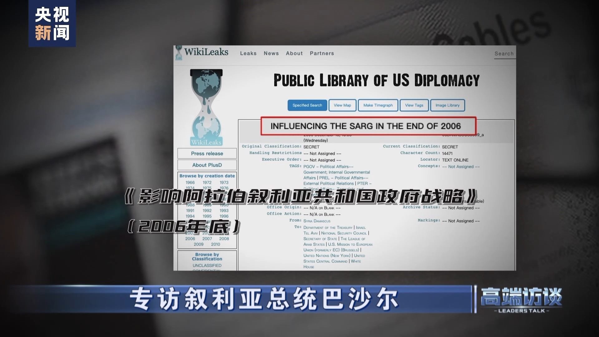 今天,我們的嘉賓是敘利亞總統(tǒng)巴沙爾·阿薩德,我們一起在對話中尋找答案。