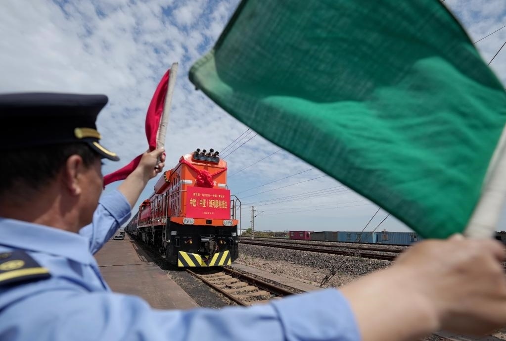 2023年6月11日,一列滿載煤炭的中歐(中亞)班列抵達中國鐵路北京局曹妃甸站。新華社記者楊世堯攝