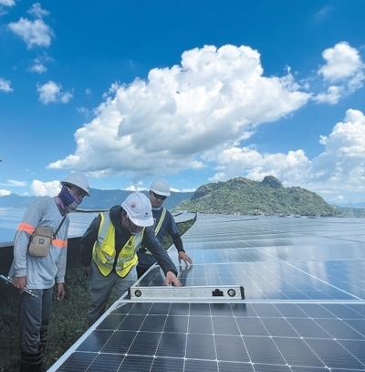 菲律賓圣馬塞利諾光伏項目由中國電力建設(shè)集團有限公司承建,項目建成后將成為該國最大的光伏電站,每年將為菲律賓供電5.9億千瓦時。圖為中方工程師(中)帶領(lǐng)菲方工作人員檢查調(diào)試光伏支架。楊獲然攝