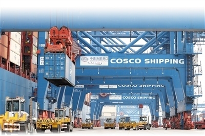 中遠(yuǎn)海運港口阿聯(lián)酋阿布扎比碼頭采用岸橋預(yù)留自動化和堆場自動化作業(yè)模式,可作業(yè)超2萬標(biāo)準(zhǔn)箱大型船舶,年設(shè)計能力250萬標(biāo)準(zhǔn)箱。本報中東中心分社 納達爾·達烏德攝