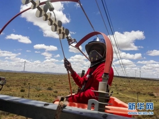 新華網(wǎng)約翰內(nèi)斯堡8月21日電(賈睿琪)在南非北開(kāi)普省德阿鎮(zhèn)附近的山地上,一座座白色風(fēng)機(jī)昂然佇立。勁風(fēng)吹過(guò),風(fēng)機(jī)葉片徐徐轉(zhuǎn)動(dòng),這是中國(guó)國(guó)家能源集團(tuán)龍?jiān)措娏δ戏枪具\(yùn)營(yíng)的德阿風(fēng)電項(xiàng)目風(fēng)機(jī)。
